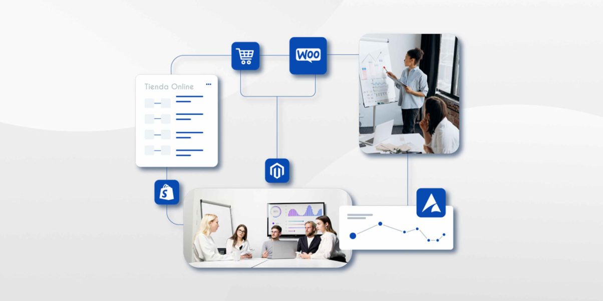 Magento: es una plataforma de código abierto que conecta de una manera íntegra con ERP (Microsoft Dynamics Business Central, SAP Business One y Factusol) y Marketplace (Ebay, Amazon y Back Market).